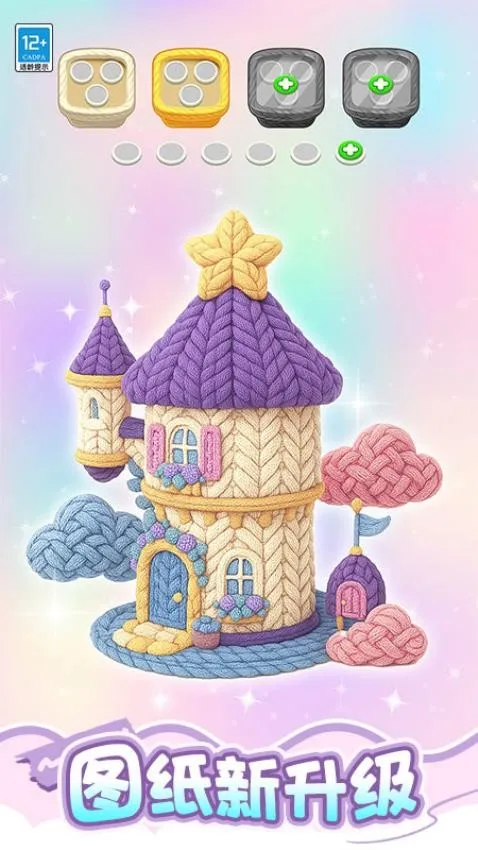 3. 关卡难度逐步提高,会出现复杂物体。每个关卡要求收集所有毛线,关卡有固定数量毛线盒子,需要可花金币添加。
