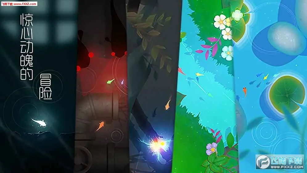 1. 唯美画面:绚丽色彩的扁平化风格搭配着奇异自然的东方元素,渲染出一片清爽宁静的荷塘,玩家可以像小鱼一样畅游其中,躁动的心也渐渐安宁。