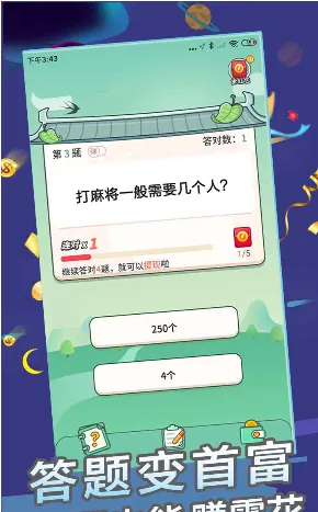 3、答题变首富画面清爽简洁,搭配轻松解压音乐,让你在愉悦氛围中享受答题闯关乐趣。还能通过答题领红包,提现真实有效。