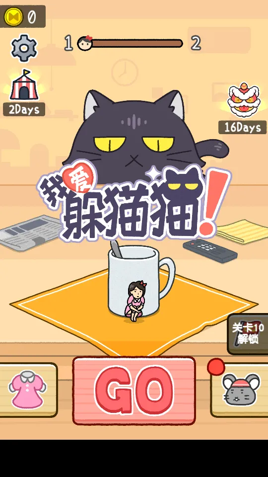2. 玩法简单易上手,单指极简操作,仅需点击屏幕就能控制小女孩移动、停止,猫咪靠近时点击还能触发躲藏动作,比如躲在茶杯后、钻进纸箱等,轻松享受躲猫猫的乐趣。