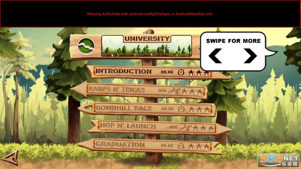其关卡丰富多样。涵盖平缓林道、碎石斜坡、垂直岩壁、旋转环道等数十种地形组合,每张地图均经过物理校准,确保跳跃弧线与落地反馈真实可信。路面上遍布滚石、断裂木板、弹簧陷阱、旋转锯片等动态障碍,需结合地形提前规划路线,规避风险同时保持高速连贯性。