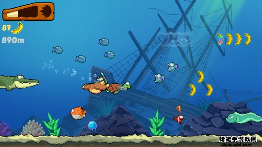 3. **玩法体验**:玩法丰富,核心是跑酷结合能量收集。收集香蕉积攒能量,能释放冲击波清除障碍或开启隐藏路线。还有多路线选择,地面、树梢、地下洞穴各有特色。道具辅助系统也完善,能帮玩家轻松突破困难区域,创造更高分数。
