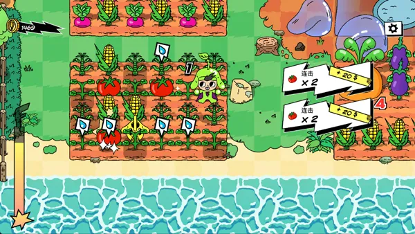 2、游戏依赖连锁反应和连击,收获单一作物能触发连击,一次性收获全农场,这种玩法机制很有挑战性和趣味性。