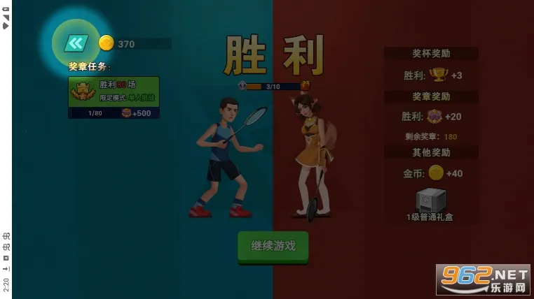 如果你想体验真实又刺激的羽毛球对战,那天天羽毛球这款游戏绝对适合你!它能给你带来超棒的拟真羽毛球对决体验。游戏里有多种玩法,能满足不同需求。完成新手训练且有 50 以上金币后,就能点击 play 进行好友联机,和朋友尽情切磋。还能选择与机器人对战,随时锻炼个人羽毛球技术。它操作简单,上手快,通过手指滑动控制击球方向,就像在现实中打羽毛球一样。游戏画面精美细腻,操作流畅,还有能量系统增加挑战性,你可以根据喜好自定义场地颜色。而且能解锁各种角色皮肤和酷炫球拍,还有丰富道具帮你降低难度。不管是打发时间,还是想提升球技,天天羽毛球都能让你在手机上尽情享受羽毛球的乐趣,快来下载开启你的羽毛球之旅吧!