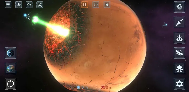 3. **丰富武器选择**:有50多种武器可用于摧毁行星与卫星,如激光、陨石、核弹等,满足收集欲望,在不同星系中尽情破坏。