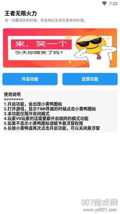王者无限火力 2026 官方最新版是王者荣耀辅助工具,内置数值修改与无限火力模式,支持英雄技能自由组合及皮肤解锁,提供悬浮窗口便捷操作,助玩家提升游戏体验。