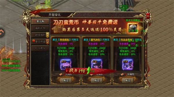 2、此版本福利满满,满级赞助特权、高爆率自动回收和自动拾取等强力功能直接赠与玩家,助玩家轻松成就最强。