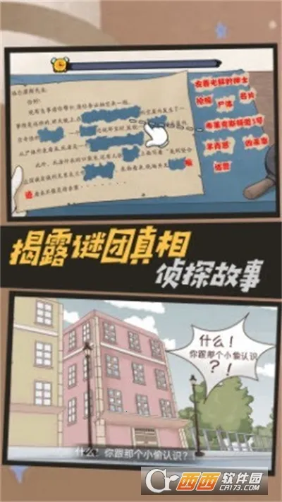 2 玩法丰富,有动画展示助了解背景,前往案件现场,与角色互动触发剧情,找到线索铺设故事线。