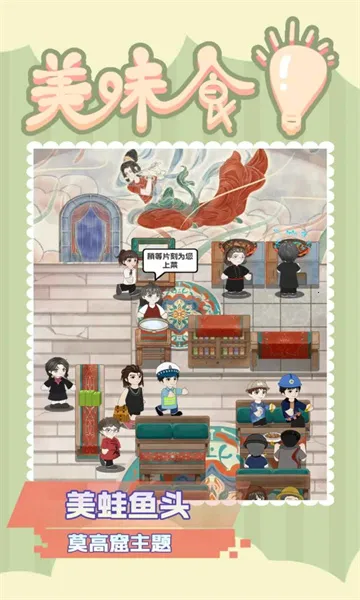 4、游戏中每个店铺拥有十余种风格迥异的装修主题,随着游戏进程推进,店铺会越来越热闹繁华。你可以按照自己的喜好随意装扮店铺,打造独一无二的美食殿堂。