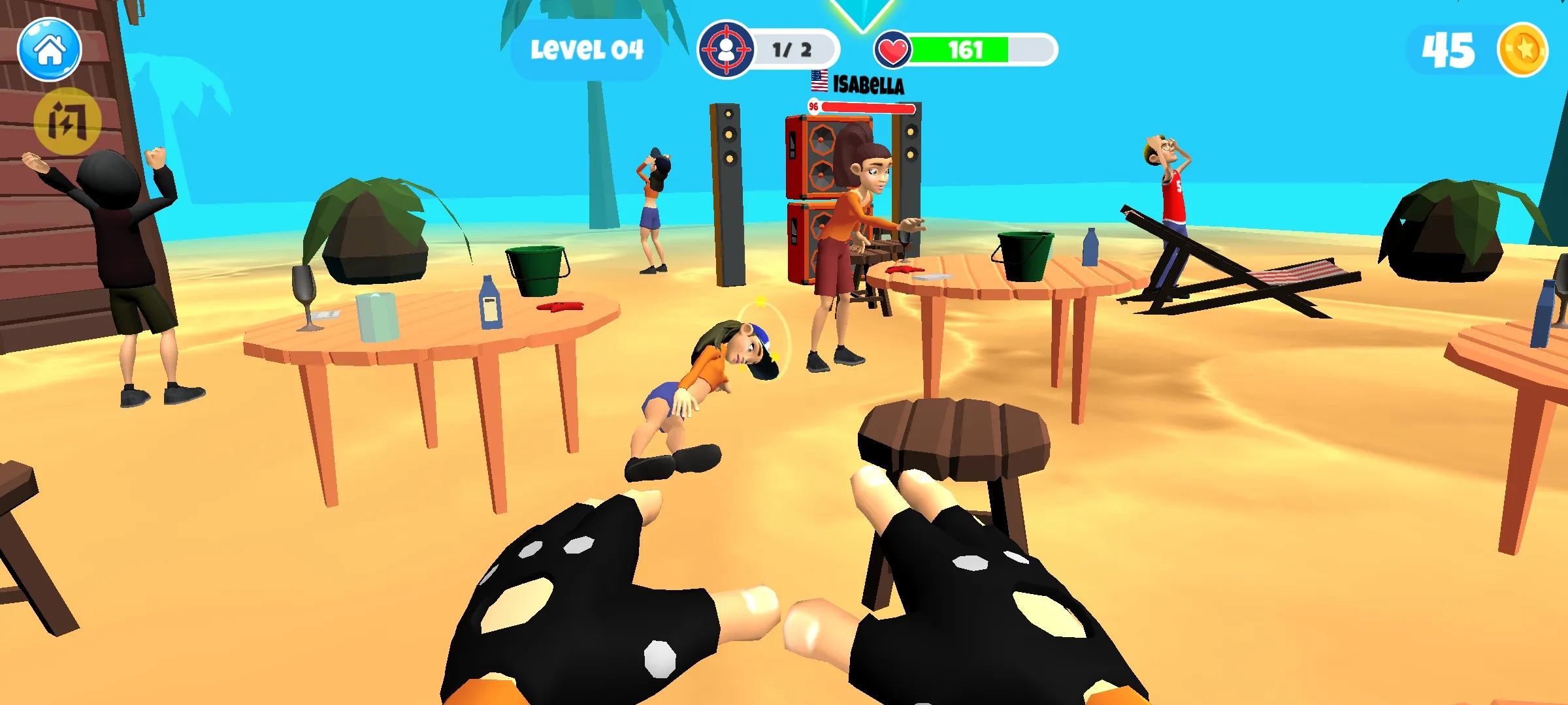 2、能精准瞄准,肆意投掷物品,尽情砸烂周围一切,全力击败对手,制造混乱。