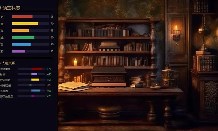 2. 具备六维属性系统,武力、智谋、魅力、统御、信仰、财富,属性决定可用选项,无最优解,全凭玩家选择。