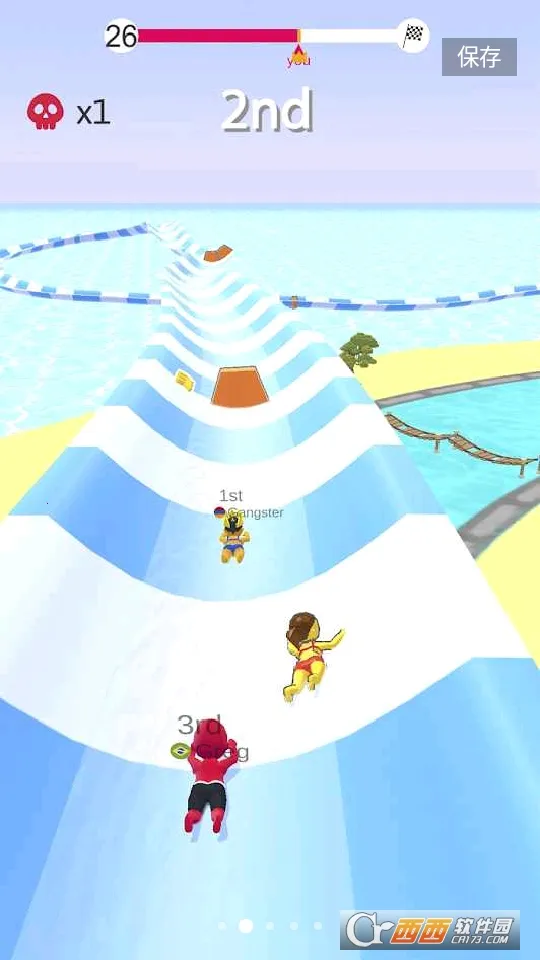 1、水上公园(io多人滑行游戏)的画面清爽简约,采用3D卡通画风,人物角色多样,水上类型题材给炎炎夏日带来清凉感。